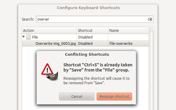Click on the cell that says “Disabled" for overwriting. You will be asked to confirm that you want to remove Ctrl+S shortcut mapping from the Save command.