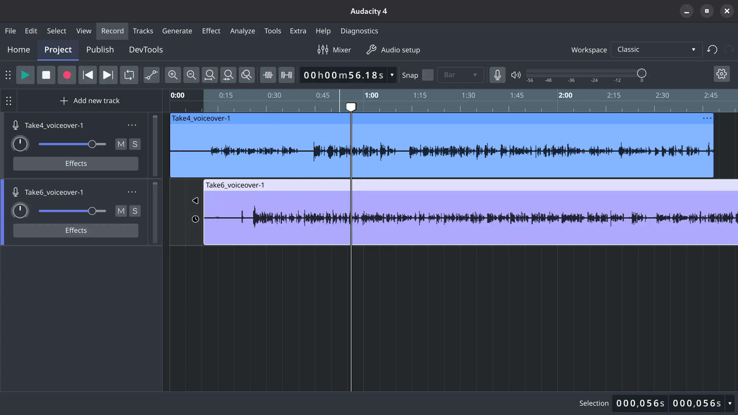 I did some very quick testing of the latest Qt-based build from the main development branch. You can create a new project, import audio, play it back, and do things like trimming, cutting, and timestretching. However, it crashes a lot and still has bits of MuseScore all over the place.